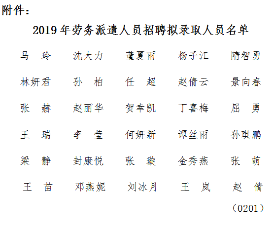 宝鸡高新人力资源有限公司 2019年劳务派遣人员招聘拟录取人员公示